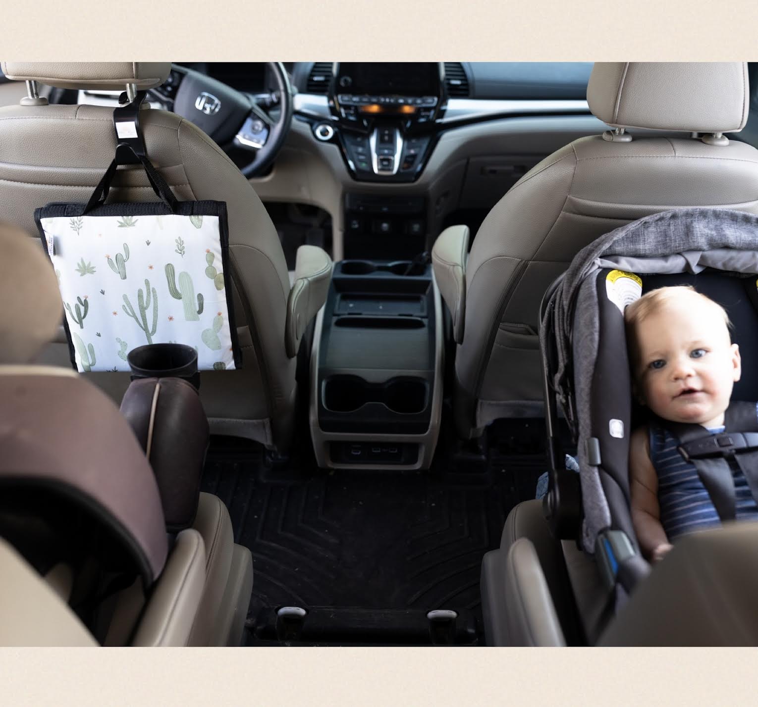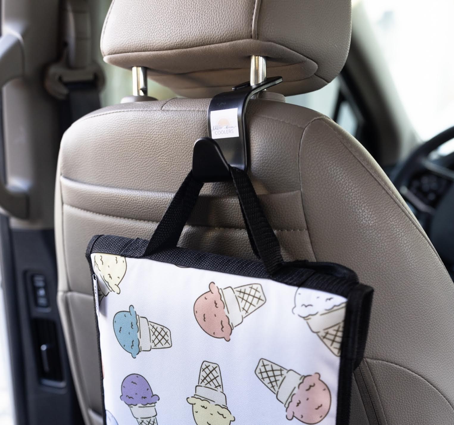 Keep your car organized and clutter-free with our LBC car hooks! Hang diaper bags, handbags, school gear, and, of course, your car seat cooler from the car's headrest, keeping the floors clear.